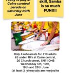 Learn to samba drum in four weeks in order to be ready to play at the Calne Carnival Parade on Saturday 29th June 2024.
